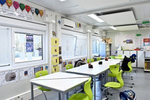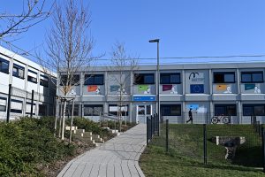 Das soll sich ändern, wenn der Anbau mit zusätzlichen Klassenräumen, Küche und Gemeinschaftsräumen im September steht. Dort finden dann 375 Schüler im „Secondaire“-Bereich Platz. Die Erweiterung ist ein erneutes Provisorium, aber eines, das teilweise stehen bleibt, wenn der Neubau fertig ist. Dessen Fertigstellung ist für 2029 am anderen Ende von Mondorf, neben dem Velodrom, geplant.