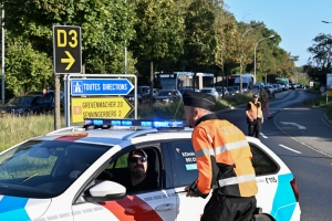 Die Polizei sperrte die Straße ab. Sie war vorbereitet. In weiser Voraussicht hatte sie bereits am Vortag gewarnt, dass es aufgrund der angekündigten Protestaktion zwischen 8.30 und 9.30 Uhr zu Verkehrsbeeinträchtigungen zwischen der Kreuzung der N1 mit der rue Lou Hemmer und am Kreisverkehr in Höhe der Einfahrt zum Flughafen kommen könnte.