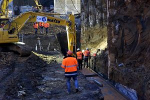 Andererseits musste der Untergrund, auf dem die Schienenstränge verlegt wurden, über die die 1.400 Tonnen schwere Bahnunterführung mithilfe eines speziellen Luftkissensystems geschoben wurde, verstärkt werden, um für ausreichend Standfestigkeit zu sorgen.