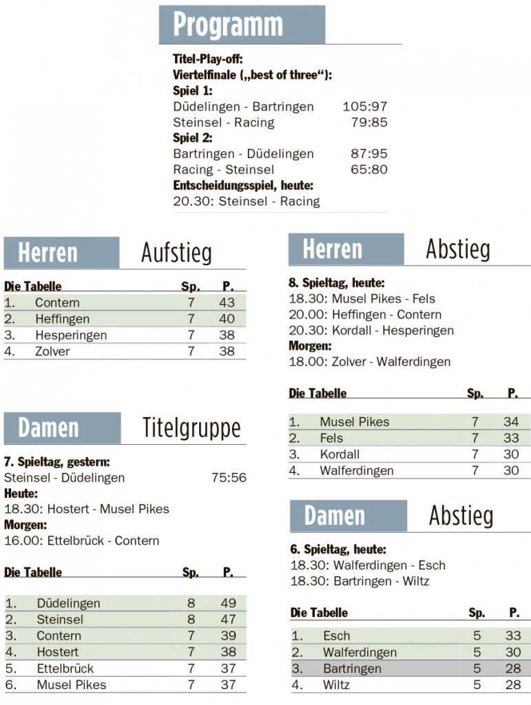 Während der T71 Düdelingen am Mittwoch nach einer beeindruckenden Aufholjagd den Halbfinaleinzug frühzeitig klar machte, kämpfen Steinsel und der Racing heute Abend (Samstag, 30.3.) im entscheidenden dritten Spiel der Viertelfinalserie um den letzten Halbfinalplatz.