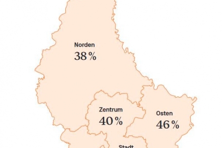 nur deswegen auf der Straße, weil dies entweder bequemer ist oder weil ihr privater Parkplatz aus diversen Gründen nicht nutzbar ist“, schreibt das Ministerium. Am geringsten sei dieser Anteil im Süden, am höchsten im Zentrum und im Osten. Laut Plan sind die Mobilitätsalternativen in Luxemburg-Stadt und „Esch & Belval“ so vielfältig und die Wege der Einwohner so kurz, dass auch neue Wohnungen ohne Parkplatz erlaubt werden sollten.