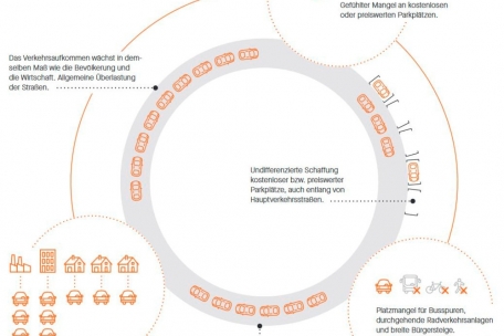 Doch wie viele öffentliche Parkplätze sollen dann überhaupt noch nötig sein? Durchschnittlich soll zu jedem Zeitpunkt jeder siebte Parkplatz frei sein. Wenn es weniger sind, dann heiße das, dass es entweder zu viele Parkplätze gibt – oder deren Nutzung zu teuer ist. Ab einem Belegungsgrad von 85 Prozent sollte hingegen die Nutzungsgebühr erhöht werden. Bei Parkplätzen mit längerfristiger Nutzung, wie zum Beispiel Pendler, P&R und Anwohnerparkplätzen, reiche es, wenn im Durchschnitt jeder 20. Platz frei bleibt.