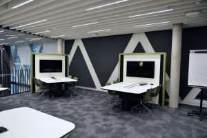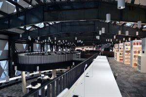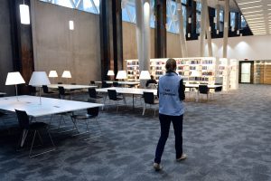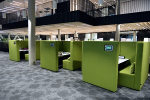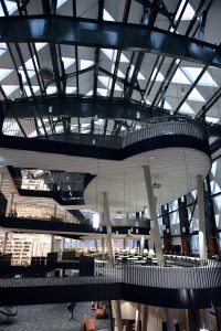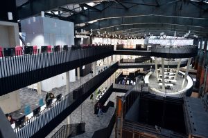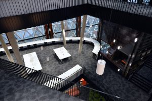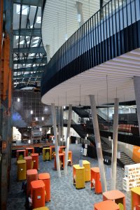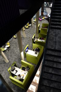 Die Räumlichkeiten erstrecken sich über mehrere Stockwerke. Jede Etage steht für einen anderen Themenbereich. „Insgesamt stehen den Nutzern 1.000 Arbeitsplätze zur Verfügung. Davon sind 500 für Teamarbeit ausgerichtet“, so die Direktorin weiter. Neben diesen individuellen Bereichen gibt es 26 Gruppenarbeits- und vier Seminarräume.