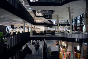 Das „Luxembourg Learning Centre“ – so wird die neue Bibliothek auf dem Universitätscampus genannt – springt einem sofort ins Auge. Die auffallende Fassade lässt keinen Blick ins Innere zu. Dabei bestechen die Räumlichkeiten mit ihrer gezielten Durchstrukturierung und ihrer Weitläufigkeit auf den verschiedenen Ebenen.