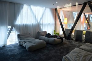 Für genügend Komfort zwischen dem Lernen sorgen bettähnliche Liegen, auf denen ein kurzes Powernap eingelegt werden kann. Überall gibt es kleine versteckte Nischen, wo sich die Besucher zurückziehen können. Abgetrennte Bereiche ermöglichen das Telefonieren, ohne die anderen Arbeitenden zu stören.