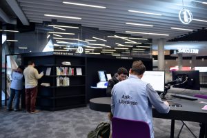 Marie-Pierre Pausch zeigt sich zufrieden mit den ersten beiden Monaten seit der Eröffnung: Allein im Monat Oktober haben 38.000 Besucher den Weg zur Bibliothek gefunden. Insgesamt 14.000 m2 umfasst das Gebäude auf dem Belvaler Campus. Davon sind 9.000 m2 frei zugänglich. „Das Zentrum unterscheidet sich von anderen herkömmlichen Bibliotheken. Genau wie die Universitätsseminare heutzutage anders ablaufen, sollte hier ein Ort zum Zusammenarbeiten und Lernen geschaffen werden.“ Inspiriert haben sich die Verantwortlichen an anderen Universitätsbibliotheken aus Österreich, Wien und England.