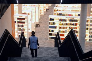 Neben Büchern verfügt das Zentrum im Erdgeschoss über ein Medienzentrum mit Tablets, auf denen E-Paper aus der ganzen Welt abrufbar sind. Auf mehreren Fernsehbildschirmen laufen die neusten Nachrichten, die auch anhand von Kopfhörern mitverfolgt werden können. Über 10 Millionen E-Books sind verfügbar. Die Tendenz geht, laut Pausch, verstärkt zu den elektronischen Büchern. Ein Projekt zur Digitalisierung gebe es nicht, da das Zentrum darauf ausgelegt sei, neue Bücher zur Verfügung zu stellen. Auf jeder Etage befinden sich Drucker, Scanner und Kopierer für den Eigenbedarf.