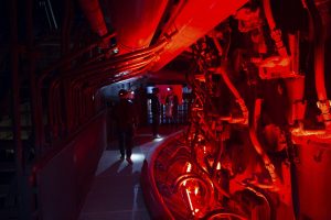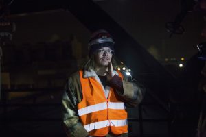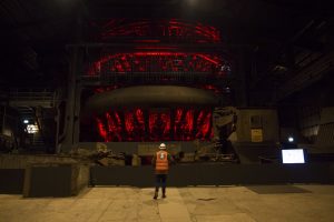 Zahlreiche interessierte Schaulustige waren zum Saisonabschluss auf Belval gekommen, um den Hochofen bei nächtlichem Ambiente zu besuchen. Helm und Lampe durften natürlich nicht fehlen.