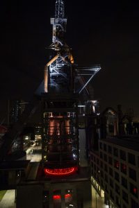 Bis zur Gicht-Plattform, also dort, wo die Hochöfen eingefüllt werden, in einer Höhe von 40 Metern, war der Hochofen A dem Publikum am Samstagabend zugänglich. Nach einem Aufstieg von 180 Stufen bot sich dem Besucher eine atemberaubende Aussicht auf die neuen Stadtviertel von Belval und Umgebung. Neben den fachkundigen Erläuterungen der Mitarbeiter konnten sich die Anwesenden über Informationstafeln Wissen über die Funktionsweise des Hochofens sowie der Roheisenproduktion auf dem markierten Besucherrundgang aneignen. Entgegen den vorigen Veranstaltungen dieser Art setzten die Verantwortliche vom „Fonds Belval“ diesmal auf zusätzliche Animation.