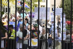 Ein Kommentator des britischen Guardian hat die Presskonferenz als eher ungewöhnlich empfunden. Unter dem gegebenen Umstand der vielen lautstarken Anti-Brexit-Demonstranten sei es üblich, „neu zu planen“, also etwa die Pressekonferenz nach Innen zu verlegen.