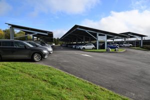 Bei der Gelegenheit wurden im Carport – der Platz für rund 300 Wagen bietet – ebenfalls zehn Aufladestationen für Elektroautos installiert, zusätzlich zu den zehn Ladestationen, die bereits an anderer Stelle auf dem Standort vorhanden waren.