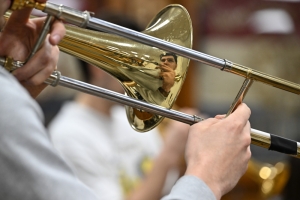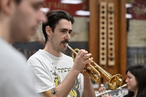 „Wenn man Trompeten oder eine Posaune sieht, erwartet man sich nicht unbedingt, dass dann Hip-Hop von Dr. Dre gespielt wird“, erklärt Tom Karier bei einem Gespräch in dem gefliesten und holzvertäfelten Musikraum der Harmonie Kleinbettingen. Dort bereitet sich die unkonventionelle Brassband „Hunnëg-Strëpp“ – bei der der 38-Jährige am Schlagzeug sitzt – seit November auf ein Konzert vor, das am Freitagabend in der Kulturfabrik in Esch stattfindet. Mit dabei bei „Hunneg-Strëpp and friends Vol.2“: „Klein“, „Maz“, „No Metal in this Battle“ und „Schëppe Siwen“. Sie werden gemeinsam mit der achtköpfigen Band auf der Bühne stehen und ihre Lieder auf ganz andere Art und Weise interpretieren.