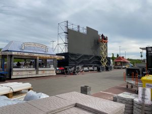 Auf dem Parkplatz des Baumarktes entsteht ein riesiger „Kinosaal“ Foto: René Hoffmann