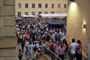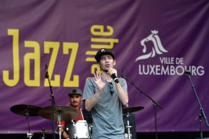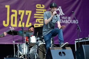 Hier begegne ich auch Nathalie Hartl vom Luxemburger Wort. Wir beschließen, uns nicht gegenseitig zu interviewen, und unterhalten uns stattdessen über unseren Eindruck von der Veranstaltung. Meinen Einwand, dass es eine luxemburgische Eigenart darstellt, möglichst viel Kultur auf einen großen Haufen zu werfen und zu hoffen, dass die Gäste etwas davon mitnehmen, wischt sie beiseite. Einerseits sei das Rallye ja gerade dazu da, einen Berührungspunkt mit jener Musik zu stiften, welche die Menschen in der Regel nicht im Radio oder auf Streamingdiensten hören und dabei mache ein überbordendes Angebot durchaus Sinn, andererseits würde gerade die Menge an Künstlern auch die vielfältigen Verästelungen der beiden Genres repräsentieren. Widerwillig gebe ich ihr recht, trotzdem wäre eine Entschlackung des Angebots auf mehrere Tage meiner Ansicht nach besser, um den Gästen die Gelegenheit zu bieten, sich wirklich mit der Musik zu beschäftigen. Nach kurzem Abwägen ist Nathalie bereit, mir zuzustimmen. Zufrieden lauschen wir der Musik.
