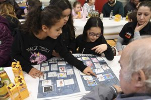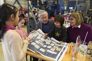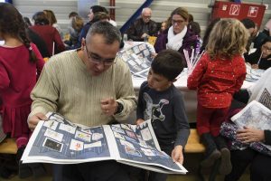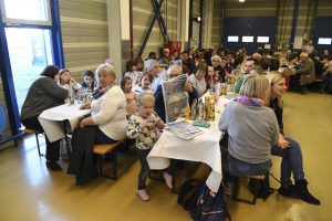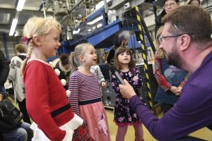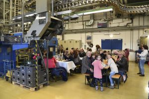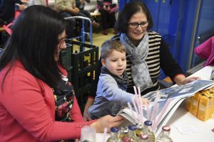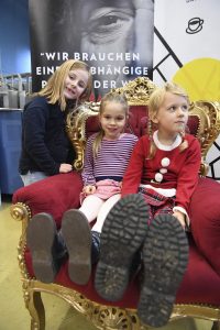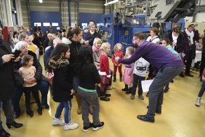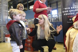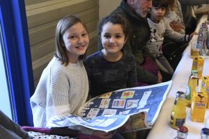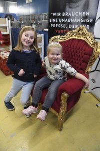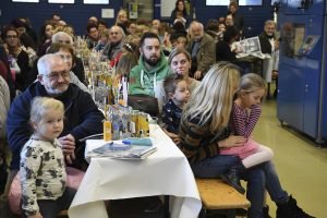 Dieses Jahr landeten über 230 Zeichnungen und Gedichte an den Nikolaus in unserem Briefkasten. Herausfinden, ob sie einen Preis gewonnen haben, wollten natürlich so gut wie alle Kinder, die mitgemacht hatten. So kam es, dass die Tische und Bänke, die in der Halle der Druckerei aufgestellt worden waren, beinahe nicht ausreichten, damit alle Anwesenden Platz nehmen konnten.