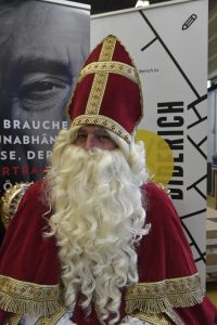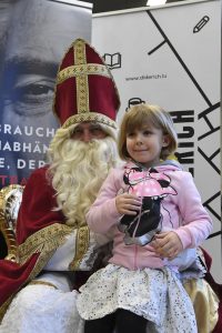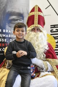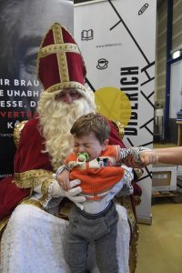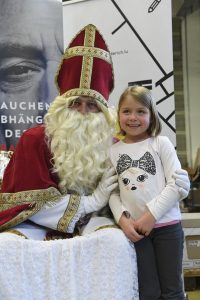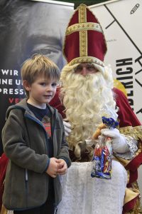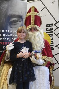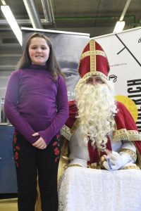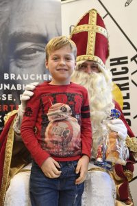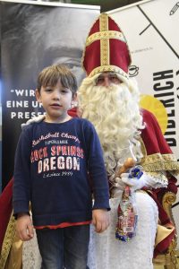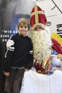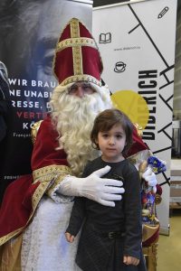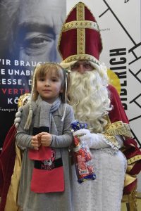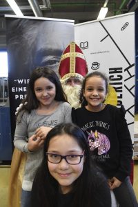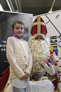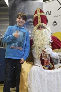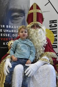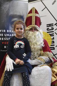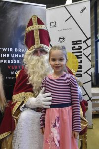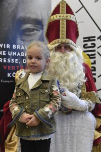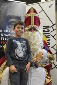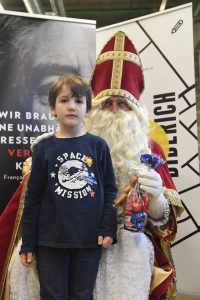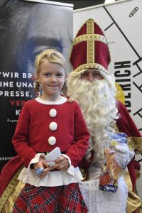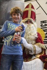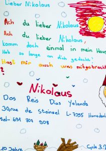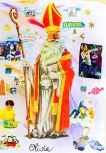 Noch bevor die Gewinner bekannt gegeben und die Preise überreicht wurden, bekamen die Kinder Besuch von einem ganz besonderen Gast. Der „Kleeschen“ betrat die Hallen und die Kinder begrüßten ihn, indem sie ihm das traditionelle Lied „Léiwe Kleeschen, gudde Kleeschen“ vorsangen. Als Dank für die schönen Zeichnungen und Gedichte konnte jedes Kind ein Foto mit dem Mann in Rot machen und bekam von ihm ein „Boxemännchen“ sowie eine „Tiitchen“, gefüllt mit Schoko-Weihnachtsmännern und Süßigkeiten.