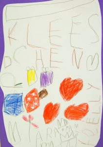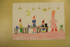 Danach wurde es Zeit für die Preisübergabe. Hierfür wurden die Kinder in vier Altersgruppen eingeteilt. Die ersten drei jeder Gruppe erhielten einen Gutschein der Buchhandlung Diderich in Esch. Da dieses Jahr deutlich mehr Zeichnungen als Gedichte eingereicht wurden, mussten die Kinder, die lieber etwas schreiben anstatt malen wollten, nicht in Gruppen unterteilt werden.