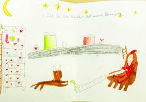Es gab auch nur einen ersten Platz in dieser Kategorie. Dieser ging an Julie Peiffer aus Goeblingen. Die 11-Jährige nahm dieses Jahr zum ersten Mal am Mal- und Gedichtwettbewerb teil. „Ich schreibe viel lieber kleine Texte, als Bilder zu malen, deshalb habe ich dem Nikolaus ein Gedicht geschrieben“, erklärt sie.