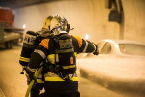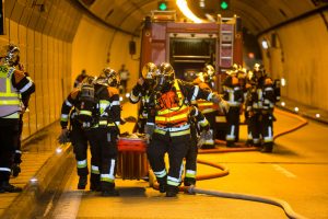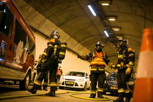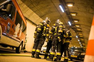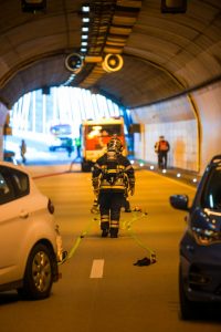 Ein weiterer Aspekt bei Tunneleinsätzen: die sofortige Sperrung beider Fahrtrichtungen. Denn anders als bei einem gewöhnlichen Verkehrsunfall auf der Autobahn rücken die Rettungskräfte bei Tunnelbränden aus der Gegenrichtung an. Zum Unfallort gelangen sie über die Sicherheitskorridore, die beide Röhren miteinander verbinden. Diese Vorgehensweise beruht ebenfalls auf der Einsatztaktik, denn der Schutz der Feuerwehrleute und des Materials darf man nicht aus den Augen verlieren, sagt der Pressesprecher. Würde man mit dem Löschzug in die „brennende“ Röhre einfahren, käme dies einer Fahrt in die Hölle nahe.