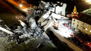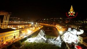 Während eines schweren Unwetters war am Dienstagmittag der Polcevera-Viadukt, der auch Morandi-Brücke genannt wird, in mehr als 40 Metern Höhe auf einem etwa 100 Meter langen Stück eingestürzt. Die Brücke ist Teil der Autobahn 10, die auch als Urlaubsverbindung „Autostrada dei Fiori“ bekannt und eine wichtige Verbindungsstraße nach Südfrankreich, in den Piemont und die Lombardei ist.
