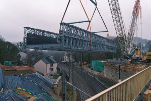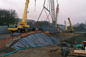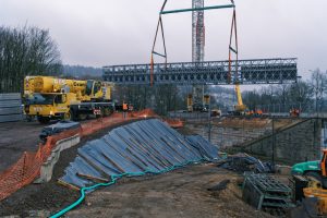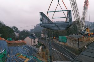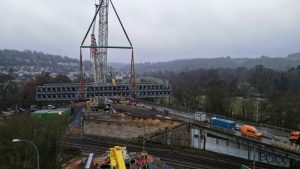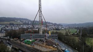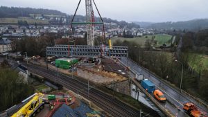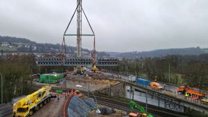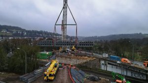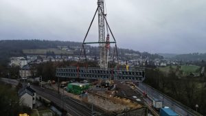 In den kommenden drei Tagen wird der Spezialkran wieder abgebaut. Für den Abtransport seiner Einzelteile werden rund 50 Lastwagen gebraucht. Gleichzeitig werden aber auch die notwendigen Abschlussarbeiten an der Umleitung vollzogen, so dass der Verkehr voraussichtlich ab Mitte März* über die Behelfsbrücke umgeleitet werden kann.