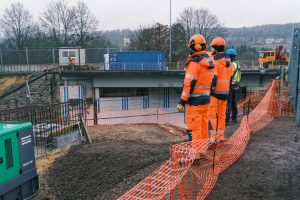 Aufgrund des doch sehr hohen Verkehrsaufkommens auf der N7 war an eine komplette Sperrung dieser Straße über die Zeitspanne von über einem Jahr nicht zu denken. So planten die Fachleute, östlich des bestehenden Übergangs eine Behelfsbrücke zu installieren. Noch vor dem Kollektivurlaub zum Jahresende wurden auf beiden Seiten entlang des Schienenstrangs Aufschüttungen gemacht und Beton-Aufleger gegossen. Gleichzeitig wurde auf einem Nebengelände die rund 45 Meter lange stählerne Behelfsbrücke zusammengebaut. Ab Mitte März* soll der Verkehr über diese umgeleitet werden.