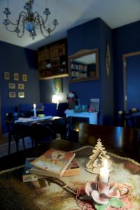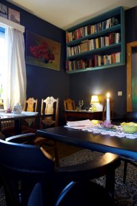 „Café am Duerf“ steht immer noch draußen an der Hauswand. Bekannt ist die Location aber als „Café littéraire Bovary“. Zwischen den Neubauten in Weimerskirch wirkt das Haus mit den bunt zusammengewürfelten Stühlen und Tischen und den vielen Pflanzen auf der Terrasse wie aus der Zeit gefallen. Das Interieur bestätigt den Eindruck. Jeder Stuhl ist anders und hat wahrscheinlich eine Geschichte zu erzählen, genauso wie die Tische oder das Besteck. Die Einrichtung des „Bovary“ verweigert sich konsequent jeglichem Standard und den visuellen Gewohnheiten der Einheitlichkeit. So etwas schafft nur jemand, der genauso durch das Leben geht. Heute ist das für Lili Fouet authentisch, lange hat sie anders gelebt.