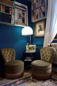 Im „Bovary“ ist es schwierig, einen Platz ohne ein Buch zu finden. In den wandhohen Regalen reihen sich Klassiker wie Balzac, Rousseau und natürlich auch Flauberts „Madame Bovary“ Buchrücken an Buchrücken. Und selbst auf den Tischen stapeln sich moderne Romane oder Reiseführer in alle Welt. Manche sind antiquarisch käuflich zu erwerben, wenn deren Besitzerin sich davon trennen kann. „Ein Buch zu verkaufen, ist immer schmerzhaft für mich“, sagt Lili. Das alles hat nichts mehr mit der Umgebung zu tun, in der sie sich früher bewegt hat. Die nüchterne, konkurrenzgeprägte Geschäftsatmosphäre ist einer literarisch geprägten gewichen, die ohne Worte eine Einladung zum Gespräch ausspricht. Im „Bovary“ sitzt man wie im Wohnzimmer eines seelenverwandten, weil literaturbegeisterten Freundes.