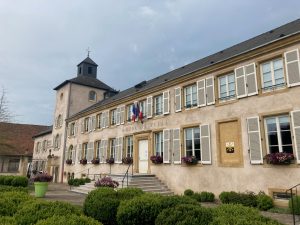 Cattenom hat sich frühlingshaft herausgeputzt. Blühende Blumen auf den gepflegten öffentlichen Anlagen und weidende Kühe vor genauso gepflegten Bauernhäusern prägen das Bild. Das Dorf setzt dem mit dem Namen verbundenen toxischen Image einiges entgegen. Im historischen Ambiente des Presbyteriums ist das Rathaus und dessen Mitarbeiter untergebracht.