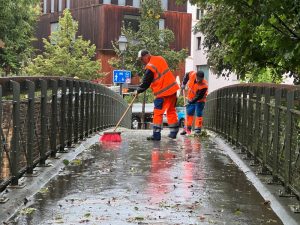 Am Dienstagmorgen haben die Behörden den Unwetteralarm für den Norden aufgehoben. Für den Süden galt jedoch weiterhin: Alarmstufe Rot. Erst gegen 14 Uhr haben MeteoLux und die Hochwasservorhersagezentrale ihre Alarmstufe für den Süden auf Orange heruntergesetzt. Demnach bestehe dort aber weiterhin Risiko auf „geringes Hochwasser, welches lokal zu Überschwemmungen und Schäden führen kann“, wie aus dem Bericht des Wetterdienstes hervorgeht. Um 17 Uhr hat die Hochwasservorhersagezentrale die Alarmstufe für den Süden Luxemburgs für Hochwasser aufgehoben.