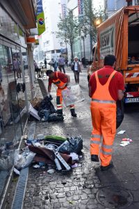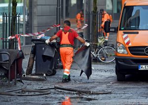 Nach den massiven Regenfällen herrsche in der Stadt „offensichtlich der Ausnahmezustand“, teilte die Feuerwehr am späten Abend mit. Mehr als 500 Einsätze standen demnach noch aus. Die Feuerwehr Wuppertal reichte bei der Feuerwehr Essen ein offizielles Hilfeersuchen ein. Die Deutsche Bahn und die Wuppertaler Schwebebahn, das Wahrzeichen der Stadt, stellten demnach den Betrieb ein. Auch aus anderen Teilen von Nordrhein-Westfalen wurden hunderte Einsätze der Feuerwehr wegen über die Ufer tretender Bäche, überschwemmter Straßen und Keller gemeldet.