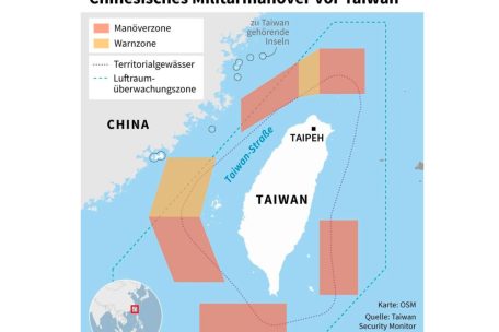 Die Regierung in Taipeh verurteilte die „militärische Einschüchterung“ durch Peking als „Missachtung internationaler Normen“. Die chinesischen Militärübungen seien ein weiterer Beweis für Chinas „Stellung als Aggressor“ und „größter Zerstörer des Friedens“, erklärte das Verteidigungsministerium. Die Küstenwache der demokratisch regierten Insel schickte nach eigenen Angaben „umgehend große Schiffe“ und unterstützende Einheiten in die betroffenen Gebiete.