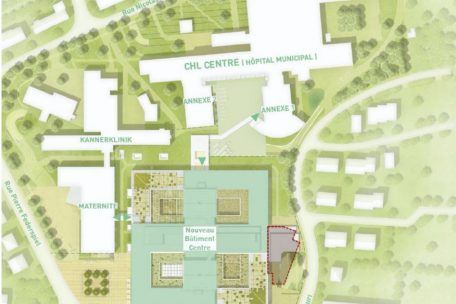 Das neue Gebäude des CHL wird auf dem derzeitigen Gelände der ehemaligen Entbindungsstation entlang der route d’Arlon zwischen dem Val Fleuri und der rue Federspiel entstehen. Das Krankenhaus soll dann „alle akuten klinischen Aktivitäten, die derzeit auf die beiden Standorte CHL Centre und CHL Eich verteilt sind, sowie das Nationale Institut für Herzchirurgie und interventionelle Kardiologie (INCCI) an einem Standort zusammenzufassen“, steht am Dienstagmittag in einer Pressemitteilung der „Santé“.
