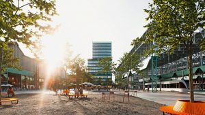 „Das Areal befindet sich zwischen zwei Naturschutzgebieten. Also ging es darum, die Natur zu vernetzen. Dann die Straßen zu vernetzen und erst zum Schluss die Gebäude. Ausgehend von der bestehenden Gemeindeinfrastruktur soll das Viertel entwickelt werden, d.h. von außen nach innen. Das hat den Vorteil, dass die riesigen Hallen für eine Zwischennutzung zur Verfügung stehen.“