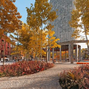 Warum keine unterirdischen Straßen mit Parkmöglichkeiten längs der Straßen für Besucher/Kunden oder auch Bewohner? Und oben die Gebäude in einen Park einbetten, denn der kahle Platz bei der Tramhaltestelle ist alles andere als schön! Abgasfrei und ungefährlich leben und trotzdem das Auto nah bei. Im Ausland geht das auch - bestes Beispiel das begehrte Olympiadorf in München!