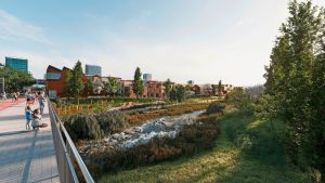 „Das neue Viertel soll an den Lallinger Berg angeschlossen sein (mit einer Brücke, Anm. d. Red.) und auch an das Brill-Naturschutzgebiet in Schifflingen. Die Alzette wird renaturiert und spielt eine wichtige Rolle, zum Beispiel beim Verhindern von Überschwemmungen. Die Weiher an beiden Seiten ebenso. Und natürlich werden die Gebäude so konzipiert, dass sie dem Klimawandel Rechnung tragen.“