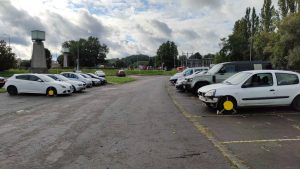 Fünf parlamentarische Anfragen musste der damalige Minister für innere Sicherheit, Henri Kox („déi gréng“), zum Thema beantworten, ehe im Herbst 2022 eine Übergangslösung am Eurohub Sud in Bettemburg gefunden war. Das Ganze in Erwartung des neuen, definitiven Standorts am Kreisverkehr Esch-Raemerich, von dem allerdings noch nichts zu sehen ist. Seitdem waren die temporär stillgelegten Fahrzeuge aus dem Escher Stadtbild verschwunden. Um nun ihr „Comeback“ auf dem öffentlichen P+R-Parkplatz an eben jenem Kreisverkehr zu geben. Dort standen vergangene Woche bis zu 25 Autos mit der gelben Parkkralle der Polizei.