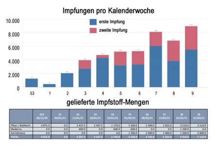 Es wird schneller geimpft – relativ gesehen: Beim Impfen legt Luxemburg wieder einen Zahn zu, nachdem es in der Vorwoche einen leichten Einbruch gegeben hat. So wurden zuletzt 8.918 Impfdosen gespritzt (erste oder zweite Dosis). In den Vorwochen waren es 6.812 und 8.086 Dosen.