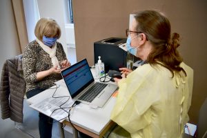 13.05 Uhr: klärendes Vorgespräch. Frau W. ist vorbereitet. Sie hat sämtliche Medikamente, die sie wegen verschiedener Beschwerden regelmäßig einnehmen muss, auf einem Zettel aufgelistet. Das kommt schon mal gut an: „Danke, somit bin ich im Bilde“, sagt Frau P., die Ärztin. Wie es mit Allergien stehe, will Frau P. noch wissen. „Keine, keine mir bekannten“, sagt Frau W. Man merkt ihr an, dass eine andere Frage ihr auf der Zunge brennt: „Womit werde ich dann jetzt geimpft?“ „Mit Pfizer“, sagt die Ärztin: „Ab 65 Jahren impfen wir zurzeit nur mit Pfizer.“ Frau W. ist beruhigt. „Über AstraZeneca hat man ja einiges gehört“, sagt sie. „AstraZeneca ist ein guter Impfstoff“, beschwichtigt die Ärztin. Sie selbst und ihr Mann seien damit geimpft worden. Erste Dosis. Keine nennenswerten Probleme. Frau W. scheint trotzdem froh zu sein, mit Pfizer geimpft zu werden.