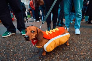 Gescheiter wäre, den einen Dackel zum Tierarzt zu bringen wegen des Auges, als ihn der Lächerlichkeit in einem albernen Kostüm preiszugeben!