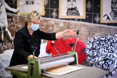 Eine Künstlerin, die ich sehr schätze, ist Désirée Wickler. Sie macht sowohl Holzdruck als auch Tattoos. Einige von ihren Bildern habe ich bei mir zu Hause hängen. Momentan ist sie, wie ich auch, Teil der Ausstellung „Figure in Print“ im MNHA und in der Nationalbibliothek.
