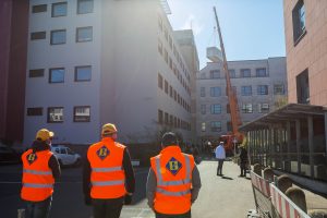 Dieser Ort sei aus technischen Gründen ausgewählt worden. Denn das alte Gebäude kann komplett vom restlichen Krankenhaus getrennt werden – auch was die Belüftung betrifft. Hier befindet sich unter anderem die Palliativstation, die als erste Station für Corona-Patienten freigemacht wurde. Die vier Stockwerke darüber sind kurz danach gefolgt.