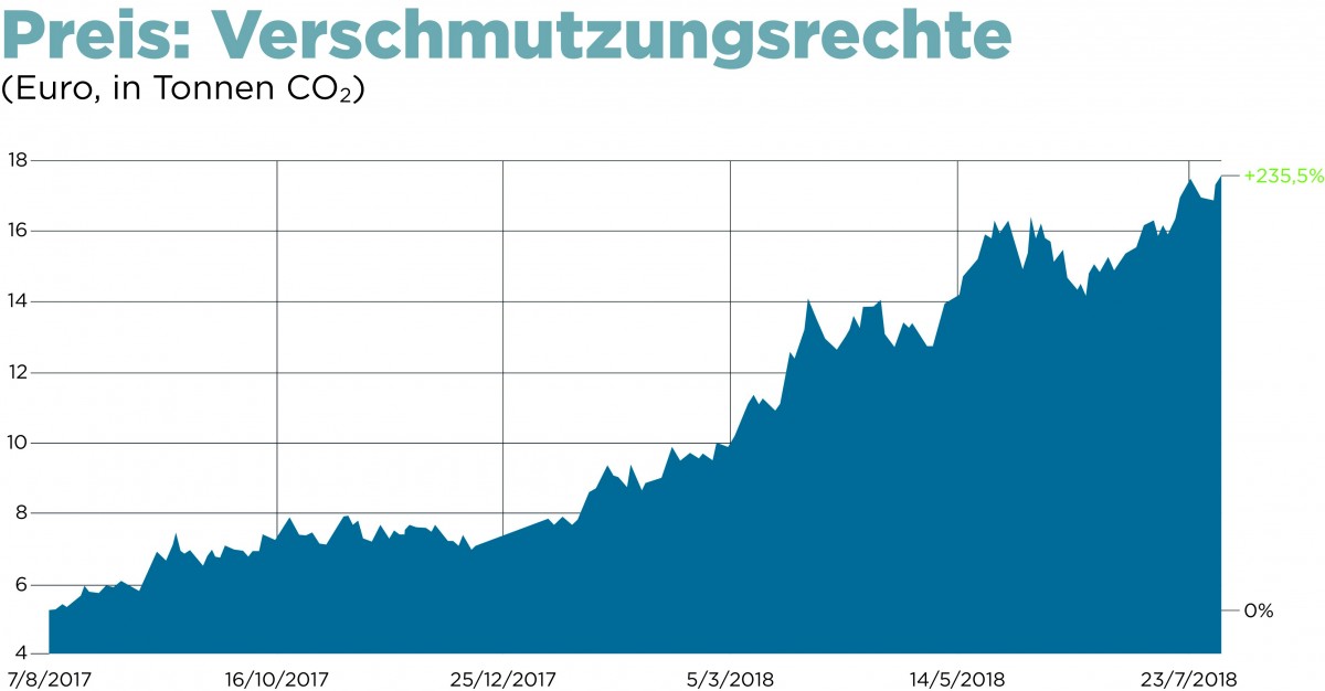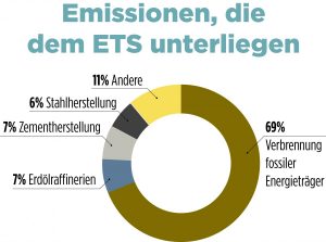 Um die Entkarbonisierung zu erreichen, wurde der EU-Emissionshandel (ETS) eingeführt. Die Stromerzeuger und weitere Industrien, die zusammen für mehr als die Hälfte der Emissionen verantwortlich sind, brauchen nun Verschmutzungsrechte. Je höher der Preis für diese Rechte steigt, desto unrentabler werden CO2-intensive Energieträger.