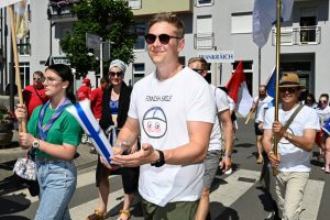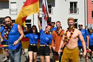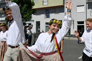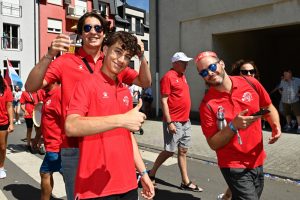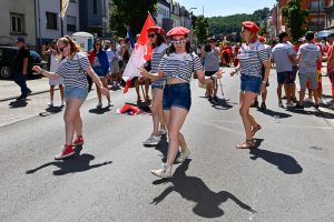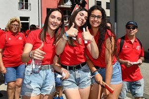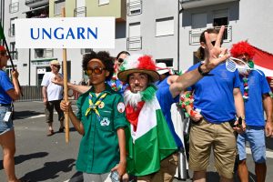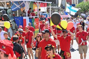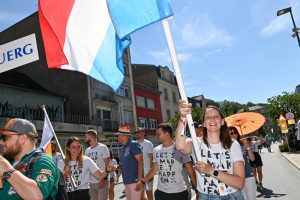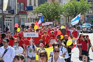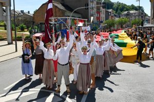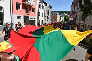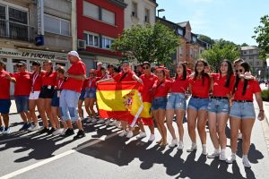 Die rund 300 Gäste aus Belgien, Dänemark, Finnland, Frankreich, Deutschland, Ungarn, Irland, Lettland, Litauen, Polen, Spanien kamen am Samstag in Luxemburg an. Portugal, Schottland und Italien hatten ihre Teilnahme kurzfristig abgesagt. Zusammen mit der Schifflinger Delegation präsentierten sich die Länder am Sonntag bei der gemeinsamen Parade durch das Zentrum der Gemeinde. Die anschließende Eröffnungsfeier fand am frühen Abend auf der Hauptbühne des Eurofestivals im Ortskern statt. Neben Bürgermeister Paul Weimerskirch und Esch2022-Direktorin Nancy Braun sprachen Roland Schreiner, Chef des Organisationskomitees, sowie Jan Fritzen, Präsident des „European People’s Committee“, dem Dachverband des Eurofestivals.