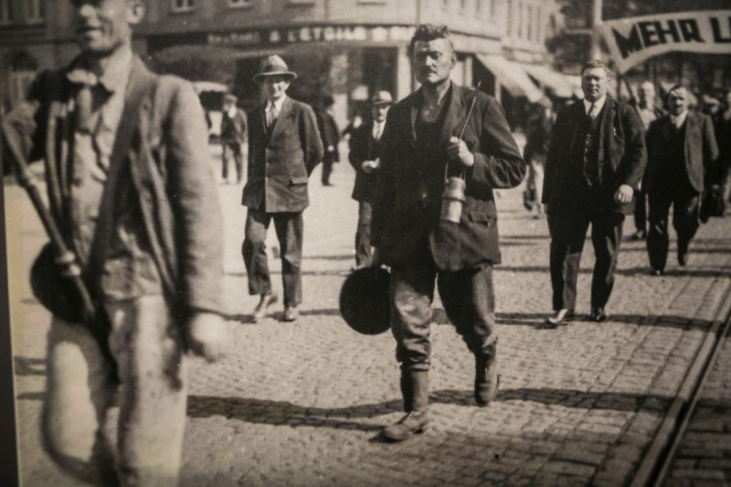1914-1948 – Krisen und Wiederaufbau: Deutsche Firmen ziehen sich nach dem Krieg zurück und werden durch belgisch-luxemburgisches (Arbed 1911), französisches (Hadir 1920) und belgisches (MMR 1935) Kapital ersetzt. Zwei Weltkriege, die Wirtschaftskrise von 1921 und die Weltwirtschaftskrise von 1929 führen zu Massenentlassungen und zum Bankrott kleinerer Unternehmen. Es kommt zum Zusammenschluss von Gewerkschaften. Kundgebungen und Streiks führen zum ersten Tarifvertrag im Jahr 1936.