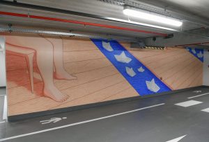 Thierry Behiels fügte hinzu, dass es sich um eine gelungene Mischung zwischen Architektur und Kunst handele, die seinesgleichen suche. Sechs Künstler (Valentina Canseco, Gaëtan Henrioux, Kosta Kulundzic, Dorothée Recker, Axel Sanson und Lise Stoufflet) haben zwischen dem 27. August und dem 7. September in den sechs Etagen der Tiefgarage Wandmalereien von einer Größe von 10 mal 2 Metern geschaffen. Sie befinden sich an den Ein- und Ausgängen zu den Galeries Lafayette.