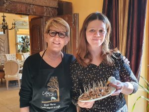 Ob für eine Soße, Gemüsebeilage oder Fleisch, jede Hauptspeise kann durch ein wenig Trüffel aufgepeppt werden können. Er verleihe eine sehr nussige Note und würde besonders gut zu fettreichen Speisen passen. „So kommt der Geschmack richtig zur Geltung“, sagt Isabelle. Auf keinen Fall sollte der Pilz beim Kochen auf über 60 Grad erhitzt werden. Bei Philippe und Isabelle ist schließlich sogar das Dessert eine Hommage an ihren Lieblingspilz: Die Schlagsahne-Torte schmeckt sehr intensiv nach Trüffel und ist etwas für echte Fans.