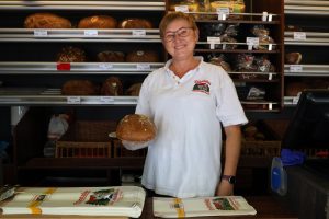 Seit drei Jahren ist Irina mit ihrem Brotwagen an jedem Freitag auf dem Frischmarkt. Sie fährt morgens um 5 Uhr im 40 Kilometer entfernten Lünebach (D) ab, kurz nach 6 Uhr öffnet ihr Verkaufswagen der Prümtaler Mühlenbäckerei. Auch sie spricht von einer treuen Stammkundschaft. „Ich habe sehr viele ältere Kunden, die jeden Freitag bei mir einkaufen und auch für die kommende Woche Bestellungen aufgeben.“ Der Beweis dafür, dass es aber nicht nur ältere Mitmenschen sind, die bei Irina vorbeischauen, ist die 6-jährige Lina, die am vergangenen Freitag neben uns stand und genüsslich in ein Brötchen biss.