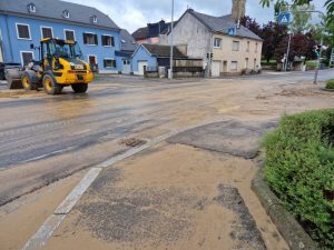 „Das Wasser ist hier die Straßen heruntergeschossen“, erzählt Christian (38) dem Tageblatt in Moesdorf. Er geht gerade mit seinem Kind an der Stelle spazieren, an der vor wenigen Stunden noch das Wasser stand. „Es wird halt immer mehr gebaut und versiegelt. Aber das Wasser sucht sich seinen Weg.“ Er zeigt uns einige Videos, die er in der Nacht aufgenommen hat, als er nach Hause kam. Statt der Hauptstraße in Moesdorf scheint darauf ein Fluss die Hauptverkehrsader im Dorf eingenommen zu haben. „Zwei Menschen sind von den Wassermassen im Auto eingeschlossen worden und mussten von der Feuerwehr gerettet werden.“ Christian sagt: „Das Hochwasser dieses Mal war schlimmer als vor vier Jahren. Und das wird in Zukunft wohl auch nicht besser werden.“