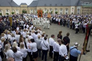 Heute haben lediglich die Staatsbeamten noch einen halben Tag frei“, so Wengler weiter, für den dies eine etwas „cocasse“ Situation darstellt. Dennoch ging er davon aus, dass es in Sachen Beteiligung ein Rekordjahr werden würde. Er sollte recht behalten. Glaubt man den offiziellen Angaben, nahmen 10.243 Menschen an der gestrigen Springprozession teil, darunter 8.411 Springer und 1.174 Musikanten. Im vergangenen Jahr waren es insgesamt 8.913 Teilnehmer. Die Statistiken werden im Übrigen u.a. von vier „Zählern“ zusammengestellt, die im Eingangsbereich der Basilika postiert sind.